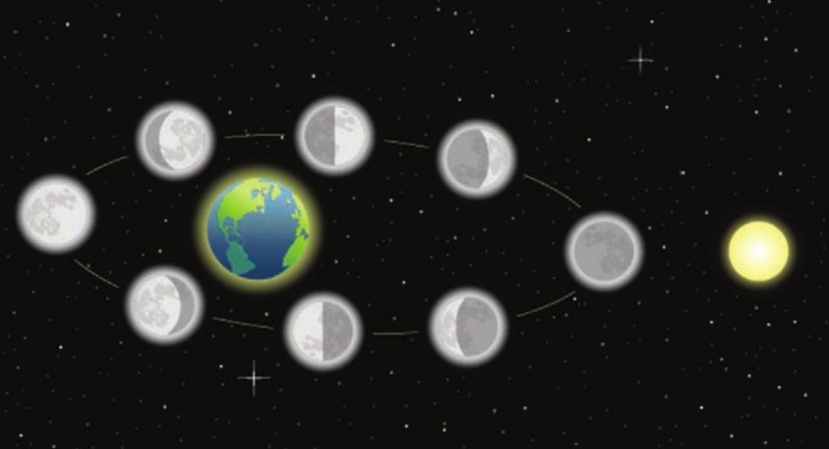 Времето, за което Луната обикаля около Земята, е равно на времето, за което тя прави едно пълно завъртане около мислената си ос. Поради тази причина ние винаги виждаме само едната страна на Луната – тази, която е осветена от Слънцето. Другата страна на Луната за първи път е видяна, след като хората започват да използват космически кораби и апарати.